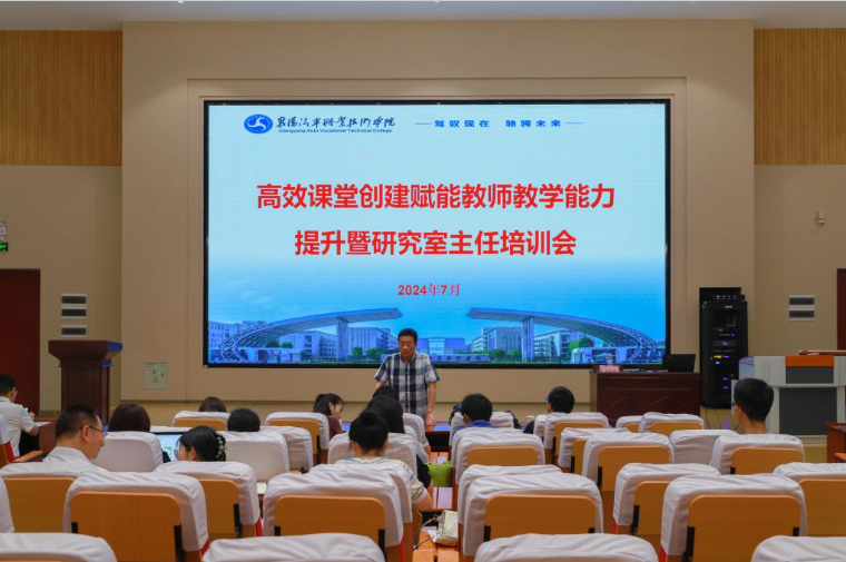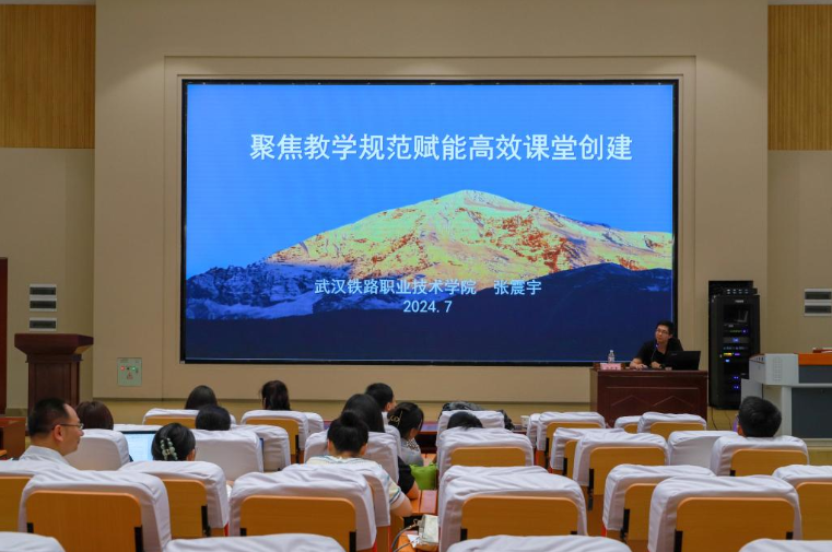 为深化课堂教育教学改革,进一步提高教师业务水平和教学能力,聚焦“数智”赋能教学设计,助力高效课堂创新,7月5日上午,我校在6号楼思政研修基地举办高效课堂创建赋能教师教学能力提升暨研究室主任专题培训。培训会由学校副校长包科杰主持,特邀武汉铁路职业技术学院张震宇副教授担任主讲嘉宾,我校各教学单位副院长(主任)、研究室主任、教学团队等参加培训会。